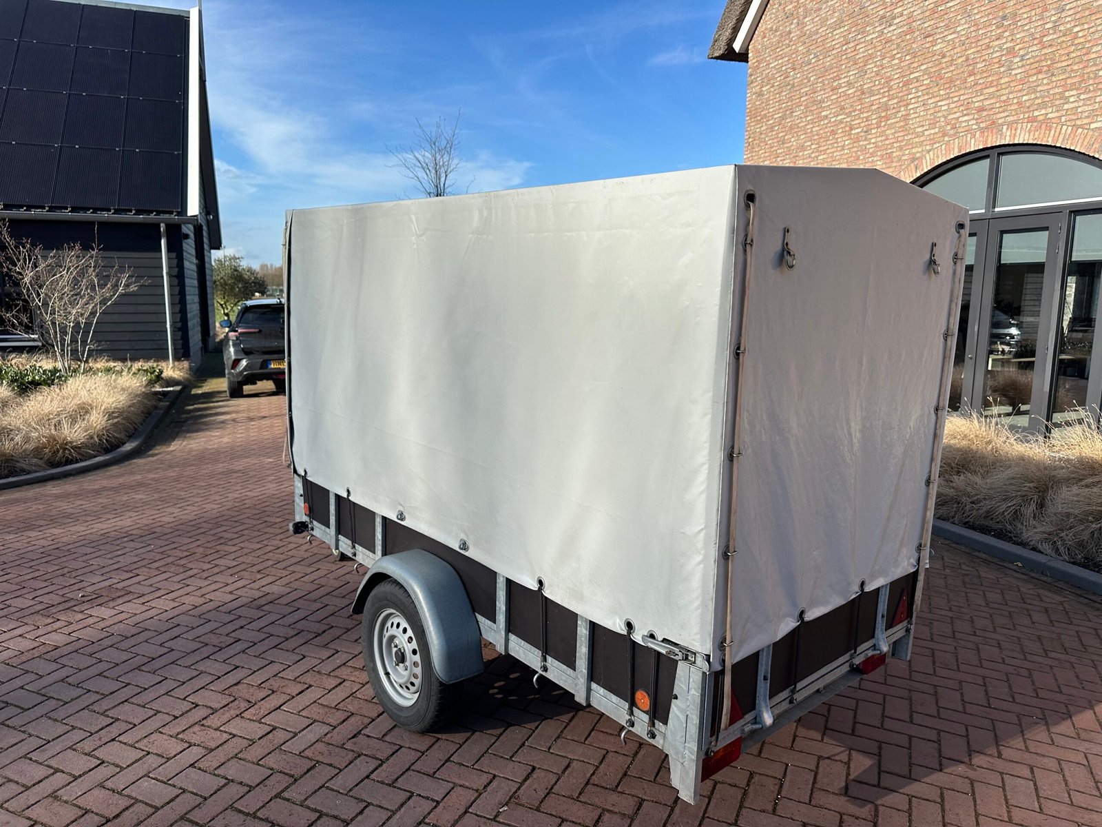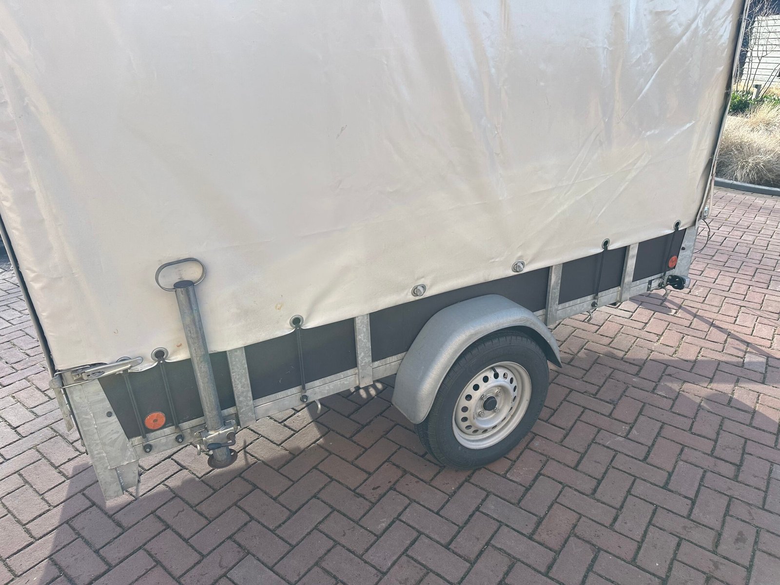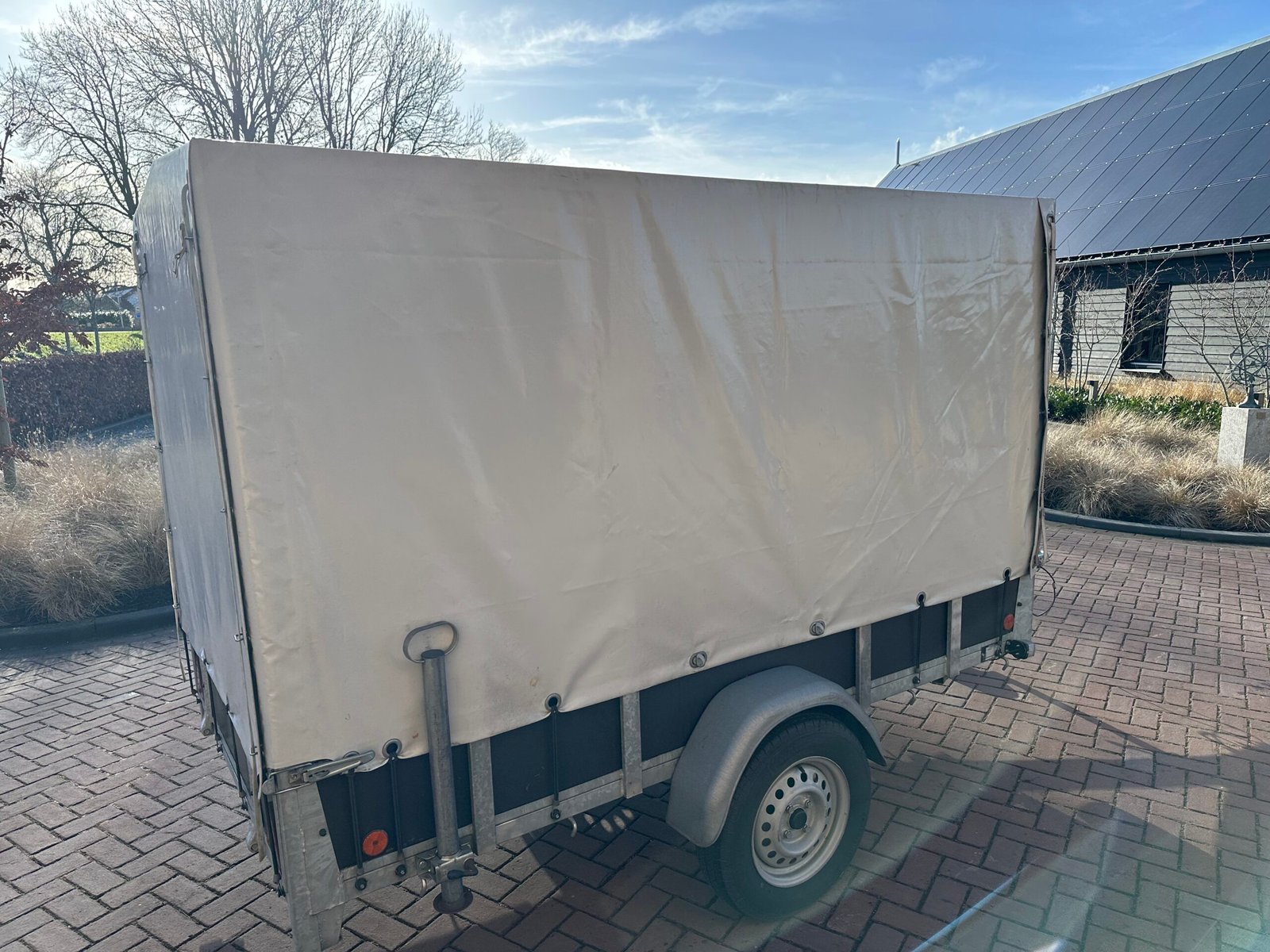 Zeer nette en hoogwaardige huifaanhanger, nauwelijks gebruikt en technisch volledig in orde. De aanhanger verkeert in bijna nieuwstaat en is zorgvuldig onderhouden. De huif is strak, volledig waterdicht en zonder beschadigingen.