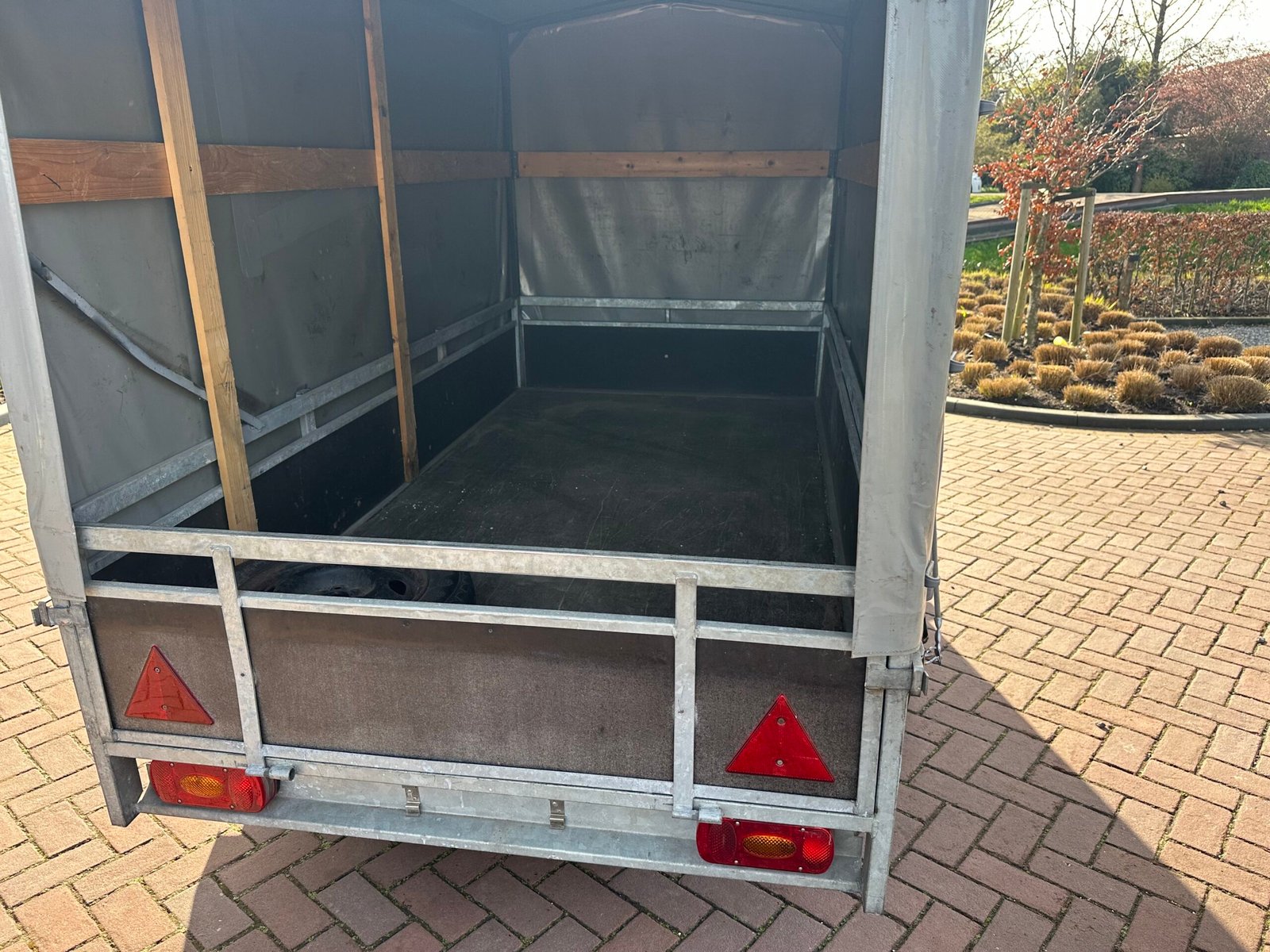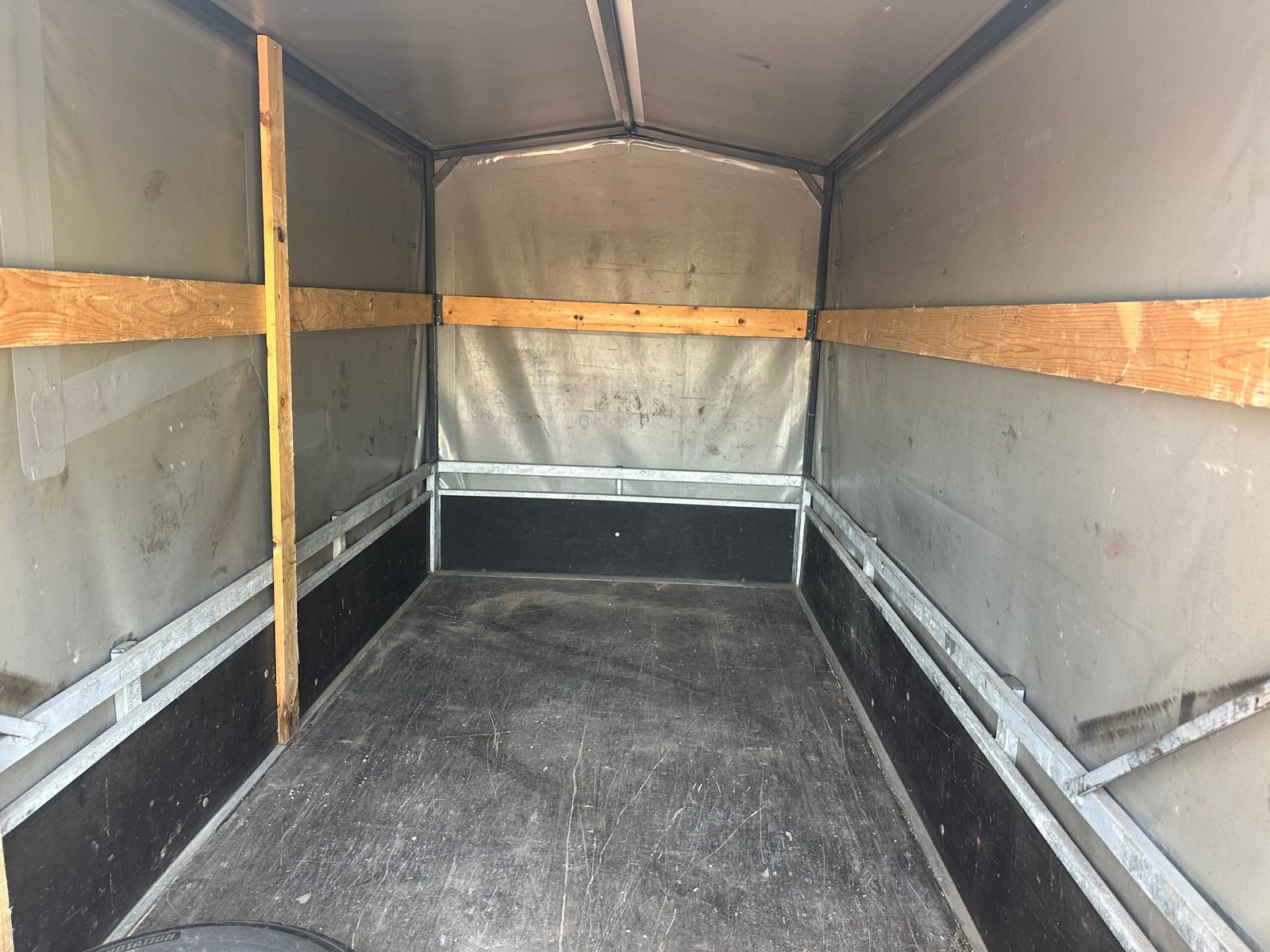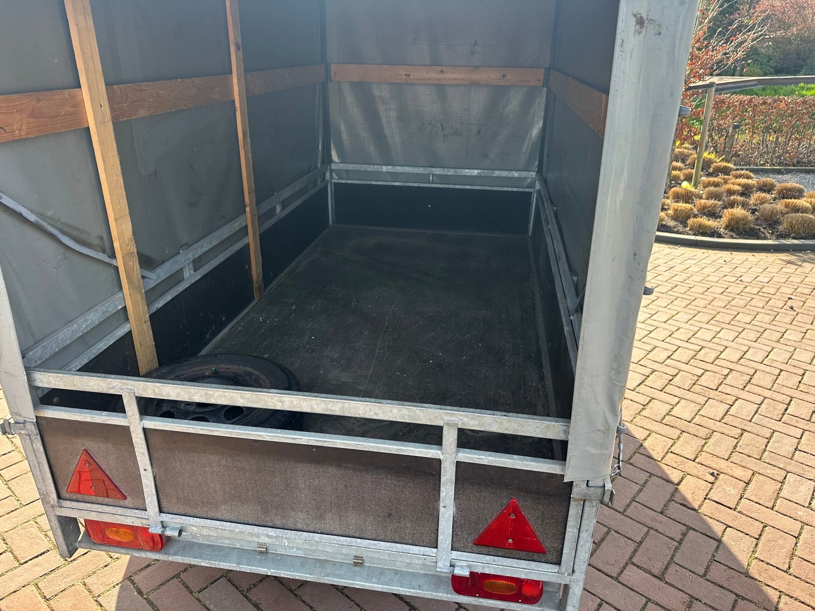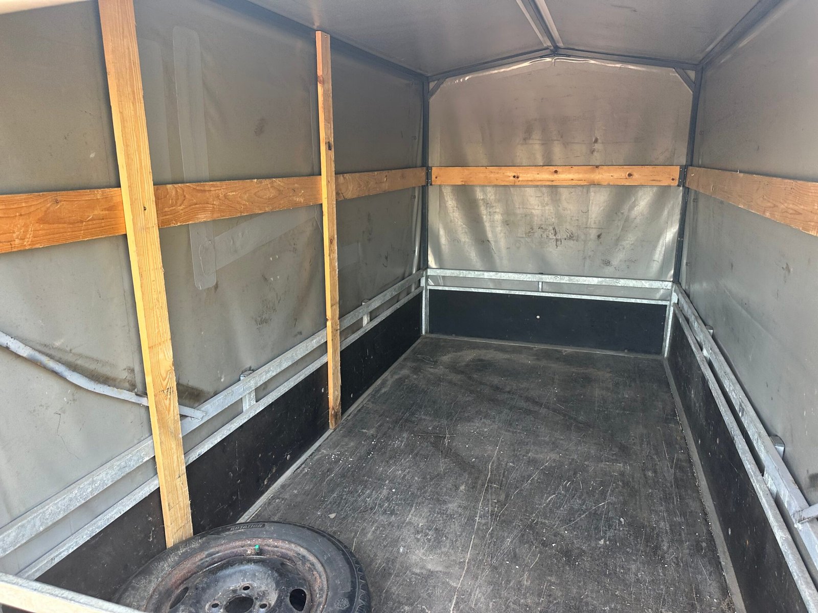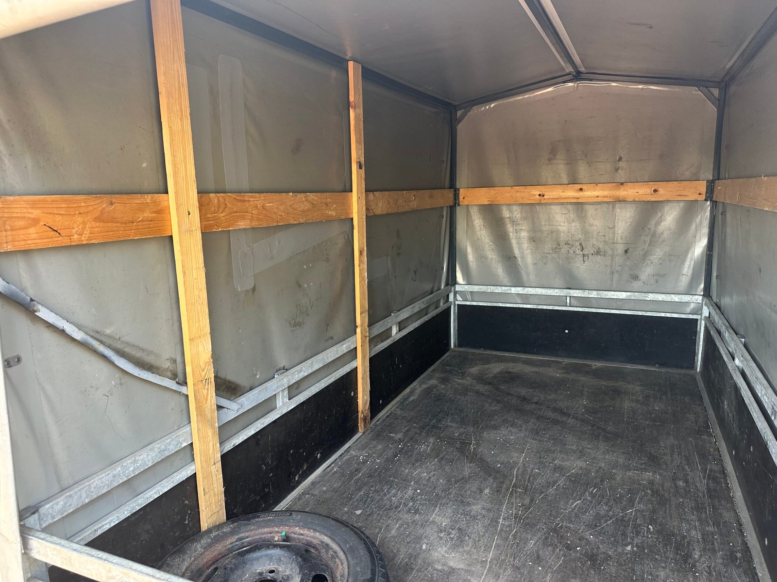 Stevige aanhanger voorzien van een praktische huif. De huif heeft een schuin dak wat voorkomt dat er water op get zeil blijft liggen. Deze aanhanger is ideaal voor het veilig en droog transporteren van diverse goederen. De aanhanger is ongeremd en goed onderhouden.