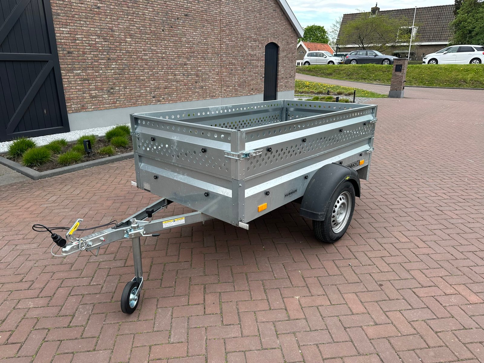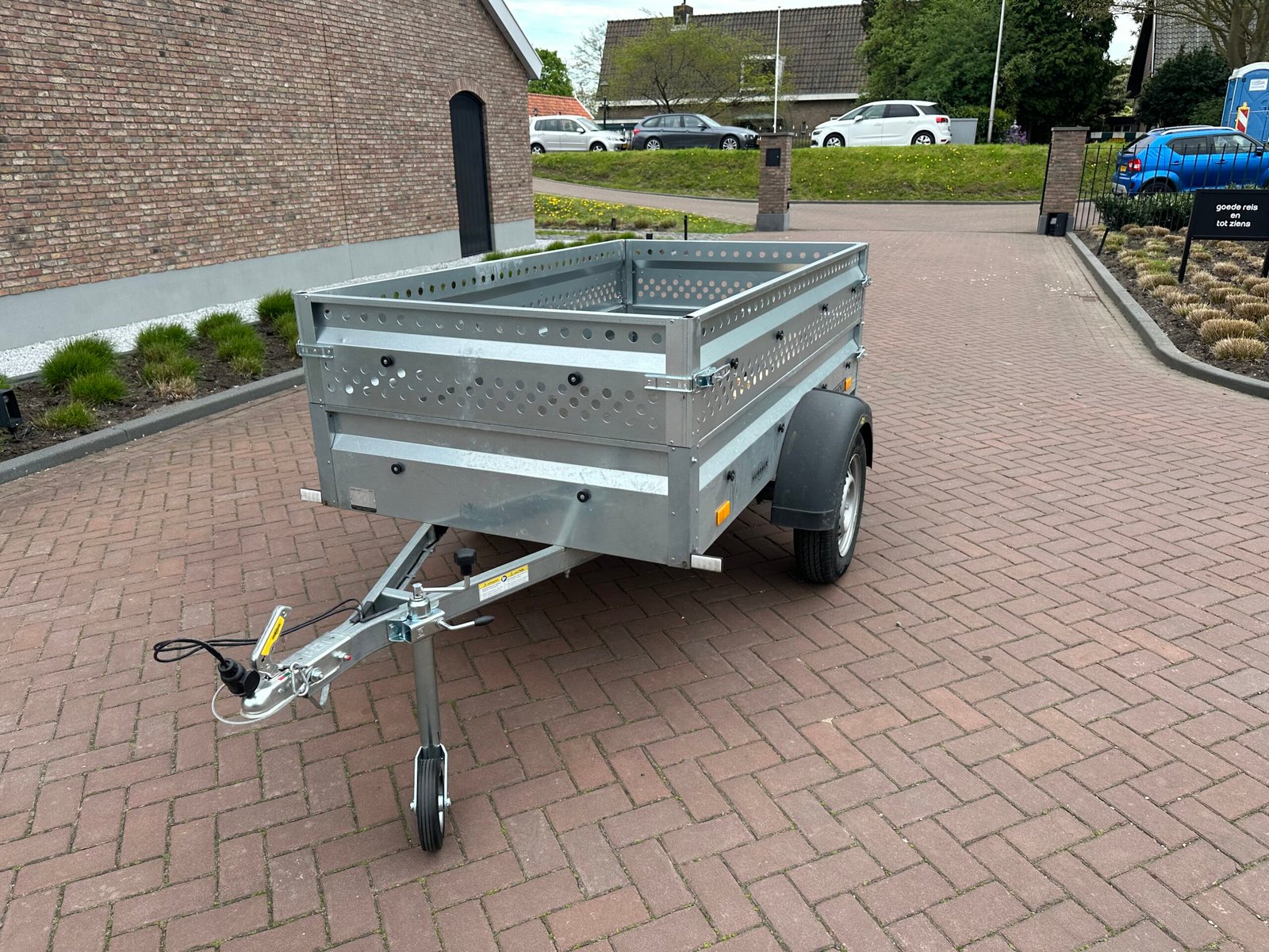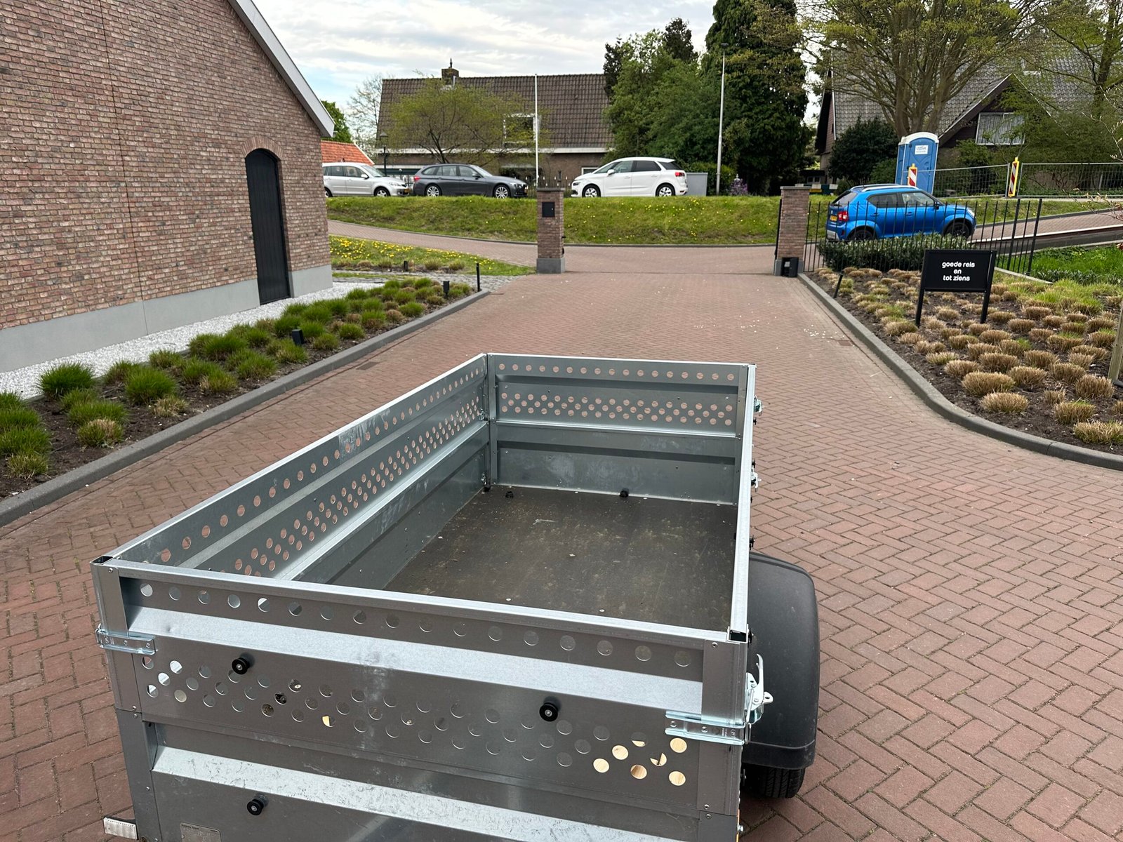 De opzetranden zijn nieuw en nooit gebruikt door de vorige eigenaar. Daarnaast is het neuswiel recent vervangen en eveneens nieuw. De randen zijn eenvoudig afneembaar, waardoor de aanhanger flexibel te gebruiken is als zowel open plateau als bakwagen.