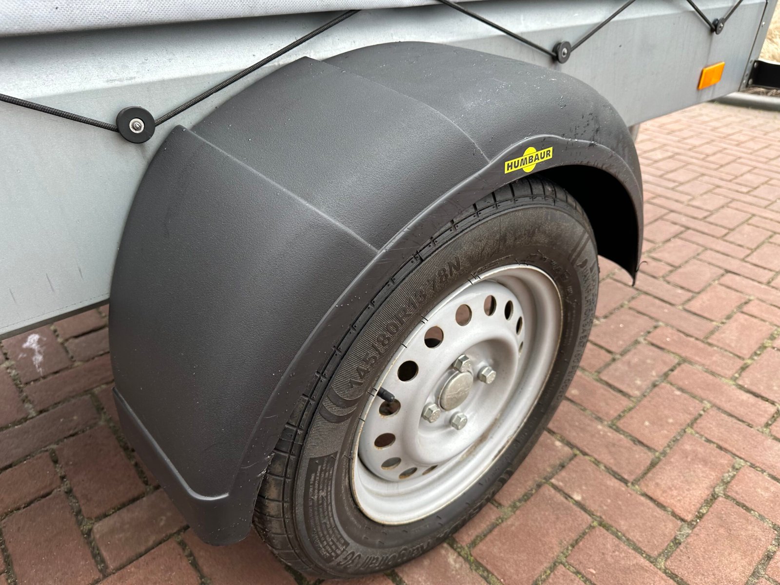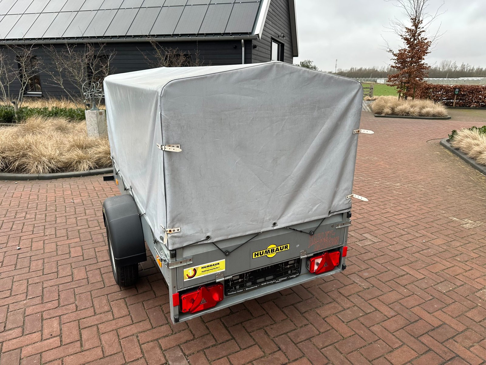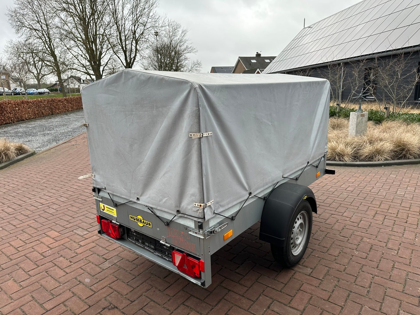 Te koop aangeboden: een zeer degelijke en betrouwbare Humbaur Steely enkelas aanhanger met grijze huif. Perfect geschikt voor zowel particulier als zakelijk gebruik!