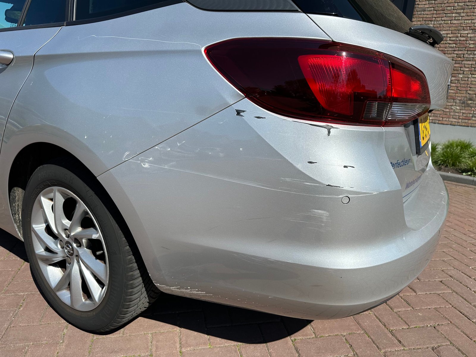 Links achter heeft de auto zichtbare lakschade