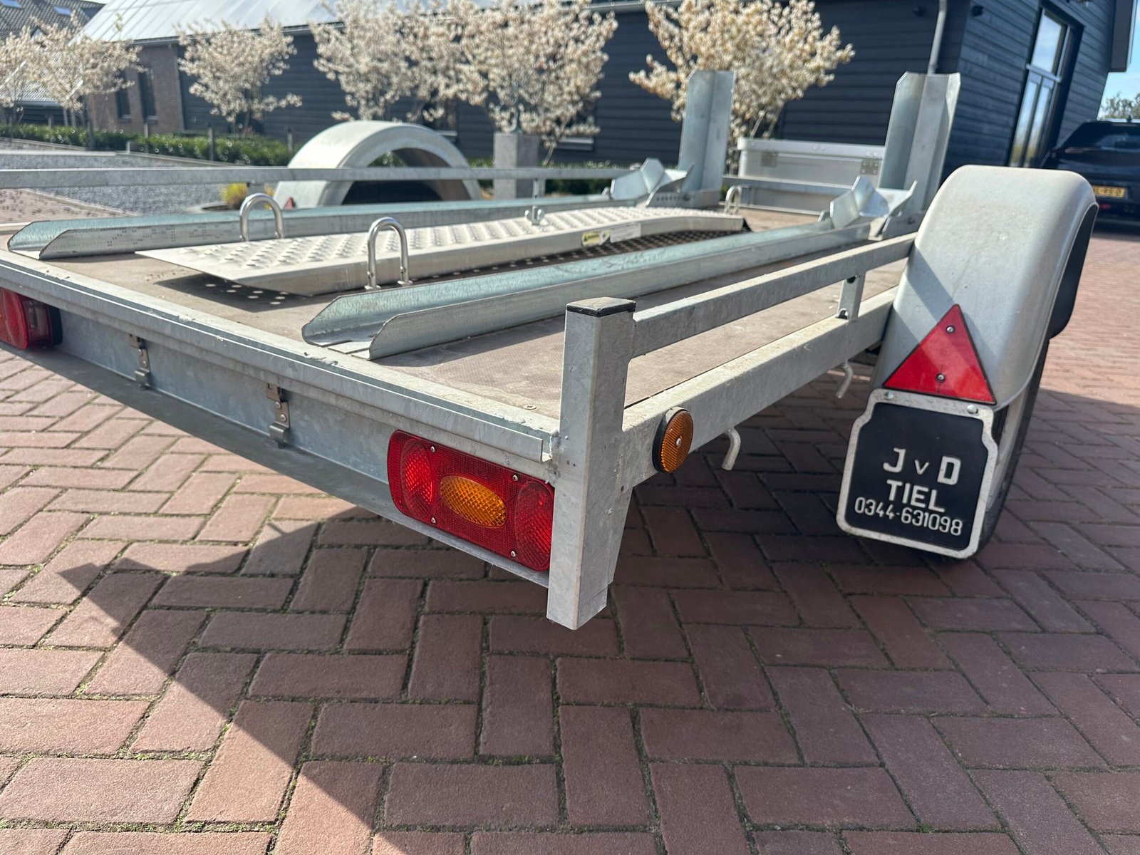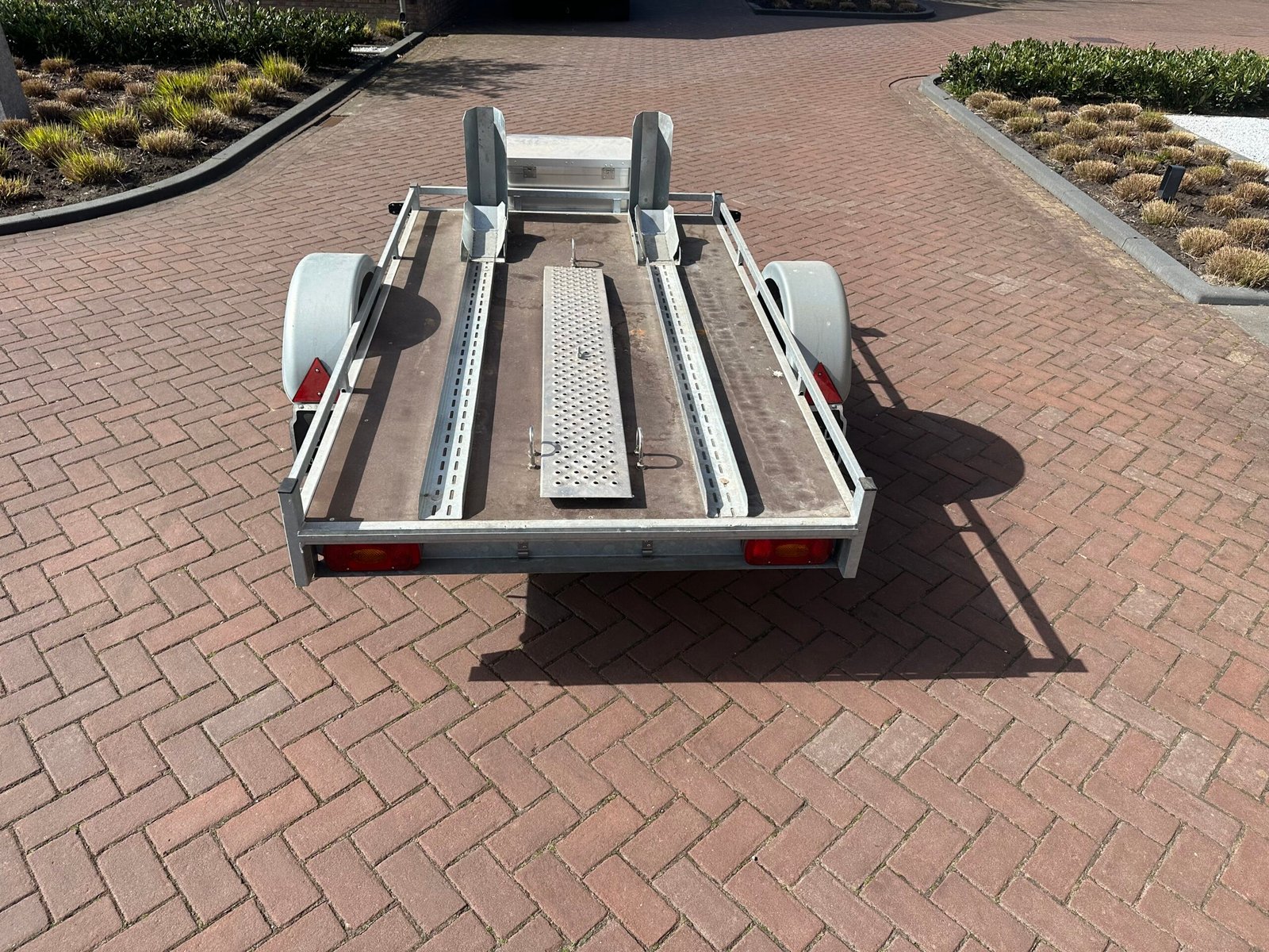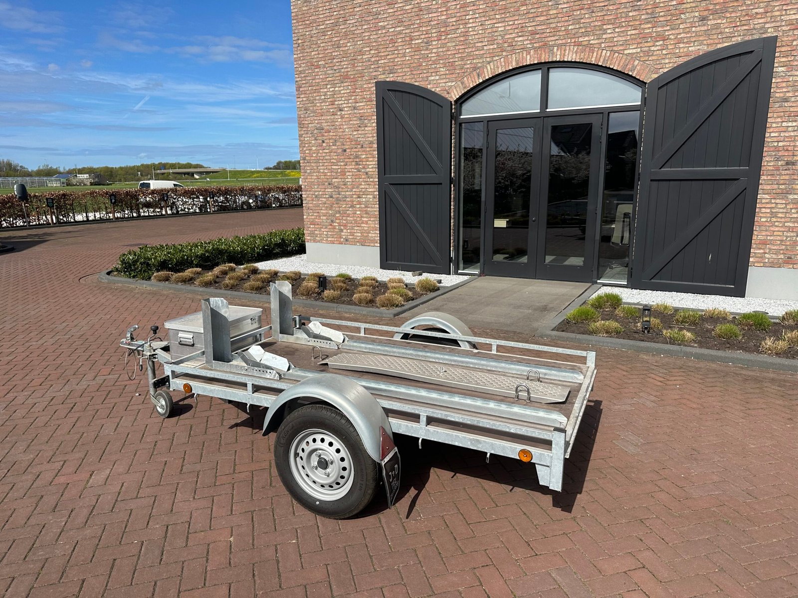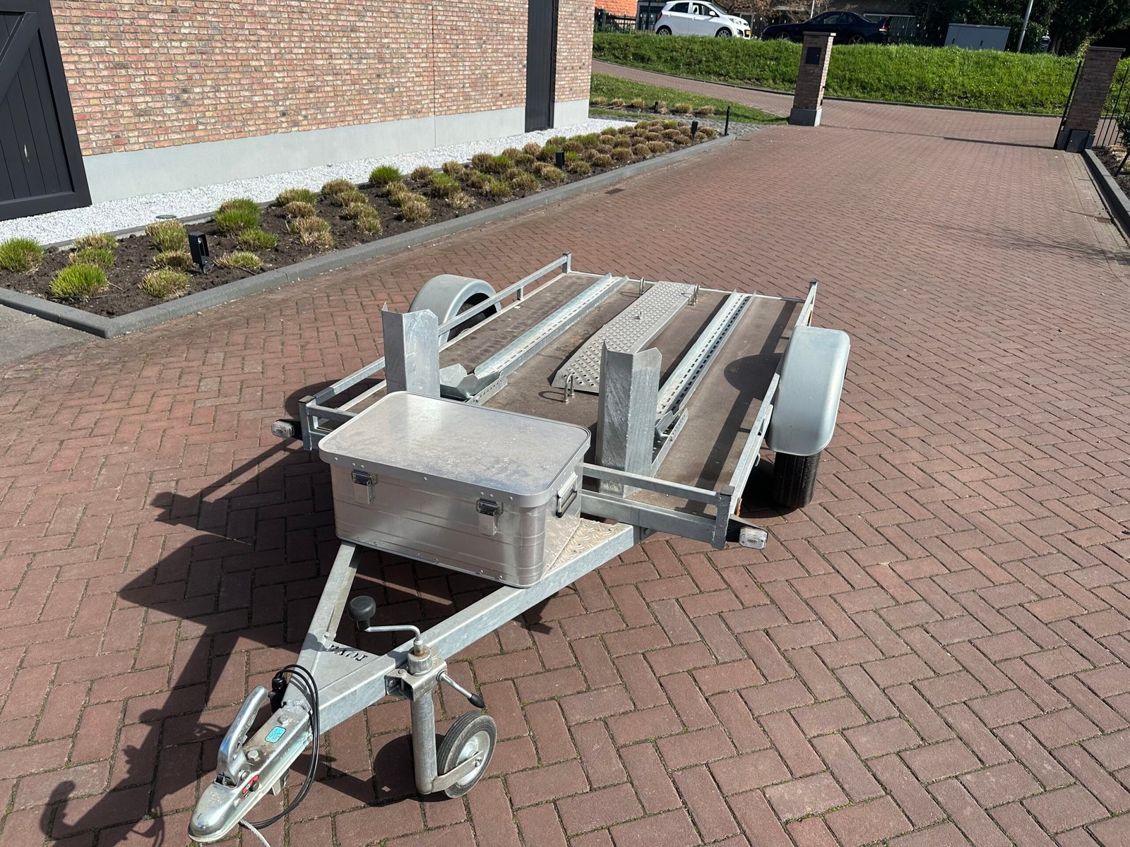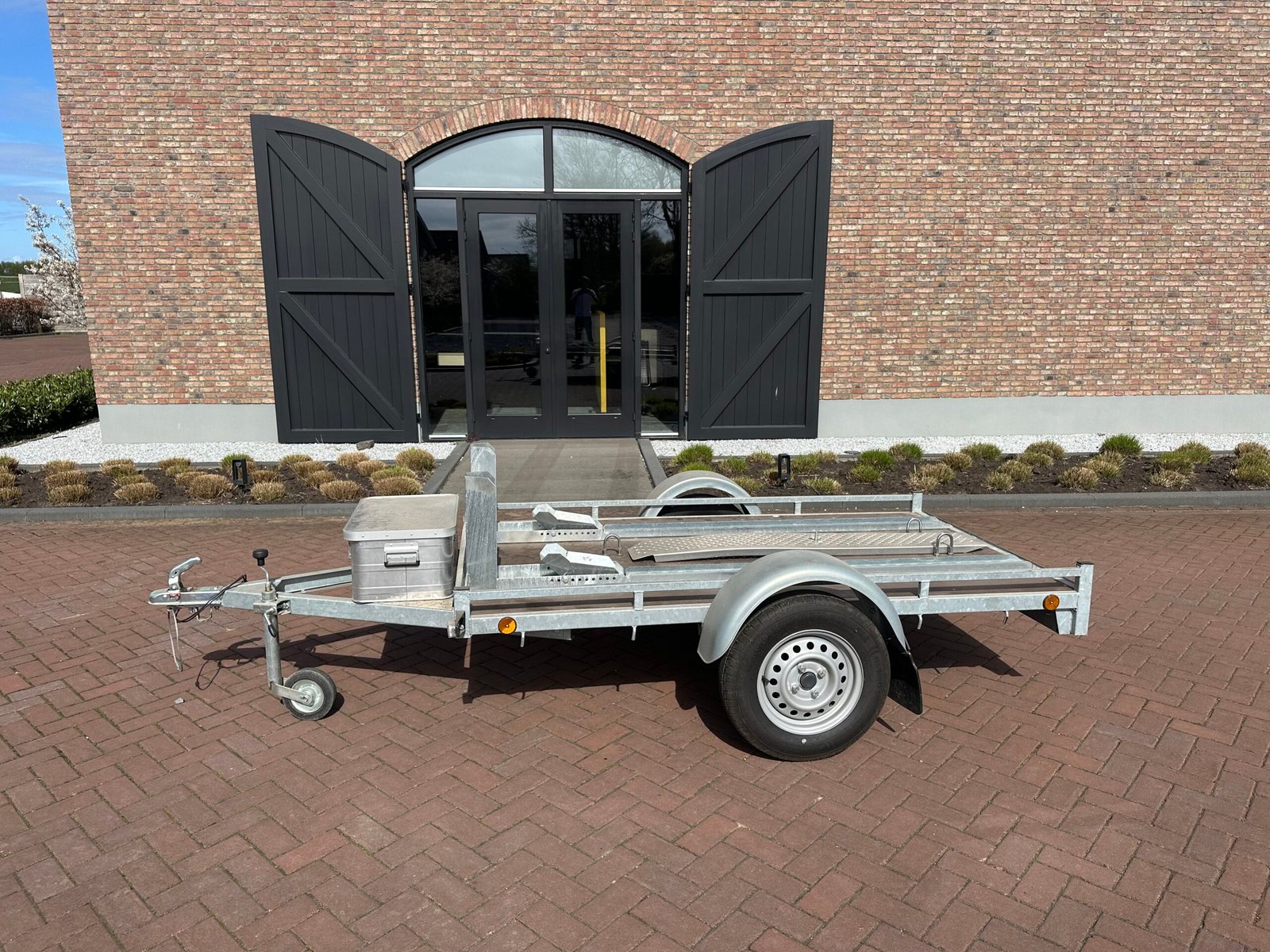 Zeer nette en complete scooter- of motortrailer. Ideaal voor het vervoeren van één of twee scooters/motoren. De trailer is voorzien van een stevige bodem, oprijplaat en opbergkist. Perfect voor vakantie tripjes of normaal transport.